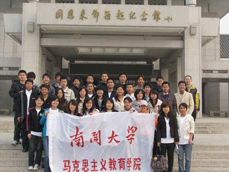 200944是中国的传统节日清明节。太阳成tyc122cc马克思主义教育院的在校本科生2007-2008级思想政治教育联合团支部团员一行40人,来到周恩来邓颖超纪念馆举行主题为“传承悠悠总理情 激扬青春南开志”的纪念活动。