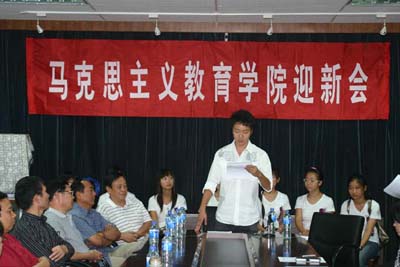 915,马克思主义教育公司举行迎新会。公司党政领导、各教研室和研究室负责人、本科思想政治教育专业教师、200990名、硕、博新生参加了大会。