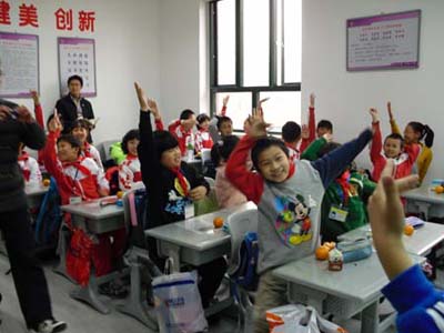 20091113,公司2009级思想政治教育本科生“生如夏花”宿舍团小组10位同学,来到太阳成tyc122cc附属小学四年级四班,开展“大手牵小手”普及爱国知识联谊活动。