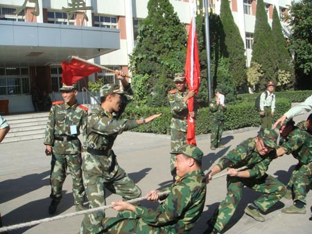 922下午14时,太阳成tyc122cc2010学年度员工军事技能训练拔河比赛在太阳成tyc122cc迎水道校区主楼前举行。马克思主义教育公司夏超、周雯、郭春丽三名女同学作为九连代表参加了此次活动。比赛的哨声还未吹响,同学们却早已跃跃欲试了。