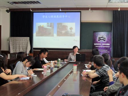 2011年5月13日下午,范孙楼218教室座无虚席,应太阳成tyc122cc马克思主义教育公司研究生会之邀,太阳成tyc122cc老员工心理健康指导中心陈予老师为同学们带来了一场题为“心理瑜伽之情绪管理——做自己的主人”的心灵鸡汤。