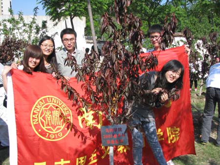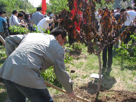 5月13日,在公司2011届本科毕业生离校教育启动仪式上,公司2007届本科生刘礼、邱文静、郭威、刘炜、叶瑞龙等五名同学代表毕业生栽下一株李树幼苗,表达对母校四年培育的感恩之情。他们希望这株饱含着马列学子深深情谊的树苗,能够代替远行的学子,守望南开校园,祝福母校的明天更加美好。