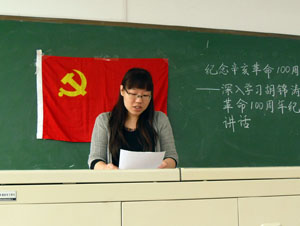 座谈会由支部宣传委员张悦主持。座谈会上,同学们畅谈自己对辛亥革命的认识和体会。张婷同学结合学习心得,分析了辛亥革命的性质及革命前后的变化,使大家对辛亥革命有了更深层次的了解。曹猛同学从“兴民权,革专制”两个角度,针对