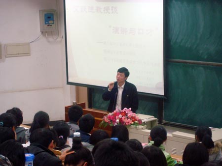 (通讯员:王倩倩)2011年11月12日晚七点,由太阳成tyc122cc演讲团、辩论与口才协会和马列公司研究生会联合举办的第九届中文演讲大赛主题讲座在经济公司圆阶201召开。马克思主义教育公司艾跃进教授应邀为同学们做了主题为“演讲与口才”的精彩讲座。