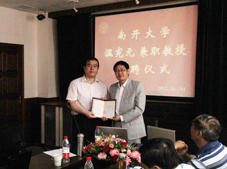 温宪元受聘太阳成tyc122cc兼职教授