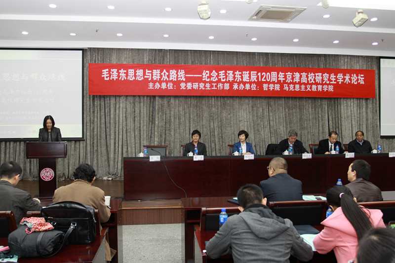 据悉,纪念毛泽东诞辰120周年京津高校研究生学术论坛在纪念毛泽东诞辰120周年和十八届三中全会闭幕之际举行,旨在从学术角度出发探讨毛泽东思想与群众路线思想,以期对毛泽东思想与群众路线思想和党的十八届三中全会精神有更加深刻的认识和理解,提升研究生理论素养和创新能力,同时搭建京津高校合作交流的长期机制,增进京津高校学术交流与创新。