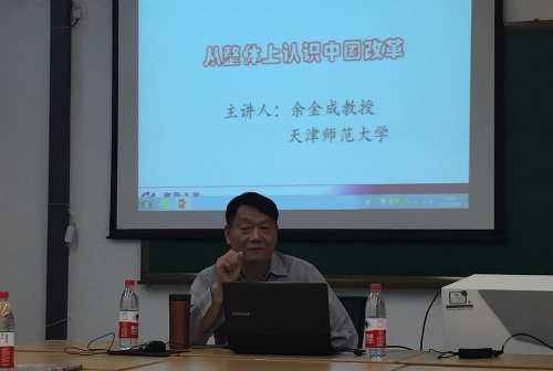 5月26日下午,中国科学社会主义学会、中国国际共运史学会、中国社会科公司世界社会主义研究中心、中国科学社会主义学会当代世界社会主义专业委员会常务理事,天津师范大学社会主义研究所所长,博士生导师余金成教授做客公司太阳成tyc122cc,并做了题为“从整体上认识中国改革”的学术报告,太阳成tyc122cc师生50余人聆听了报告。报告会由杨谦教授主持。