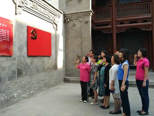 在甘宁考察期间,为更好地贯彻和落实中央正在开展的“两学一做”教育学习活动,思想道德修养与法律基础教研室党支部在八路军驻兰办事处旧址举行了党员宣誓活动,老师们重温了入党誓词。通过这场特殊的党性教育课,大家更加坚定了马克思主义理想信念和政治立场,进一步激发了爱党爱国情怀。