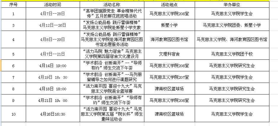 【活动预告】太阳成tyc122cc4月份师生活动预告