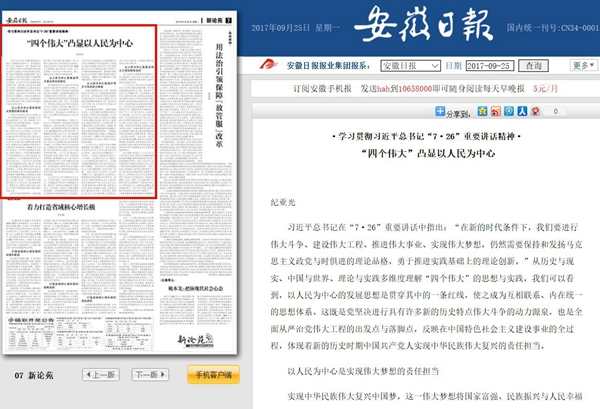《安徽日报》纪亚光:“四个伟大”凸显以人民为中心