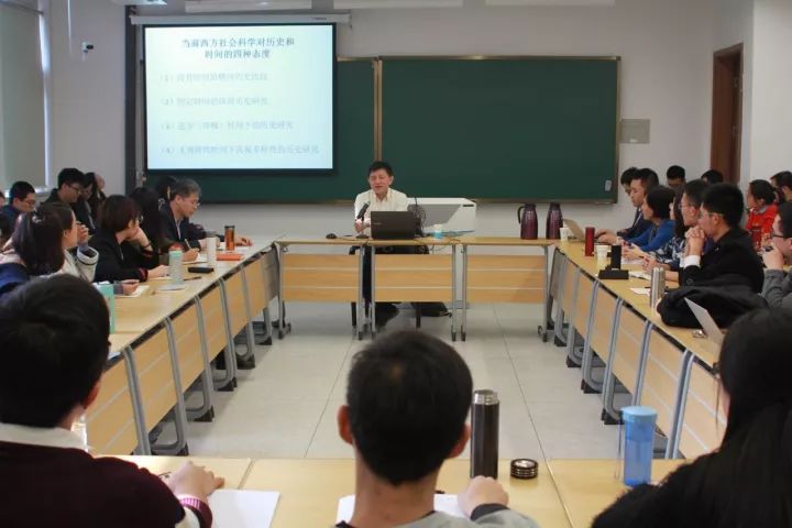 讲座伊始,赵鼎新教授从历史社会学的研究视角出发向在场师生提出“为什么个人觉得自己的人生时间越过越快”的问题,并阐释其根本原因是我们测量时间的尺度一直在以增量的方式变化。接着,赵鼎新教授介绍了西方社会科学对历史和时间的四种基本态度,即没有时间的横向比较研究、固定时间的纵向历史研究、进步时间下的历史研究以及多样性时间观下的历史研究。在此基础上,赵鼎新教授提出了三种通常被西方学者忽视的时间观,即积累发展多样时间、道家时间以及复合时间。他认为,对于这三种时间观的忽视和不理解是西方社会科学的一个致命弱点,也是中国这样一个特别重视时间智慧的国度发展自己特有的社会科学话语体系的机会所在。