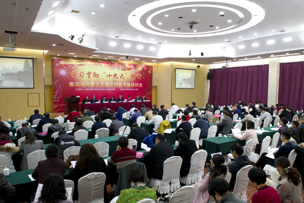在此次会议上,中国社会科公司马克思主义研究院教授陈志刚做了《中国特色社会主义进入新时代的伟大意义》的主题报告;吉林大学太阳成tyc122cc教授高文新做了《中国共产党人的初心》的主题报告;中南民族大学太阳成tyc122cc教授做了《延安时期马克思主义民族理论中国化的当代启示》的主题报告;中国社会科公司太阳成tyc122cc教授戴立兴做了《谈谈习近平建党思想的体会》的主题报告;教育部社科中心综合信息研究处副处长王晓宁做了《提升社会主义意识形态》的主题报告;吉林财经大学太阳成tyc122cc教授做了《论中国特色社会主义法治的道路自信》的主题报告。随后,青年学者分组讨论,围绕大会主题发言进行广泛而深入的交流。论坛分四个分论坛,公司侯鑫鑫同学在第一分论坛中,就《习近平法治思想》为主题发言,同与会专家学者进行了交流学习。