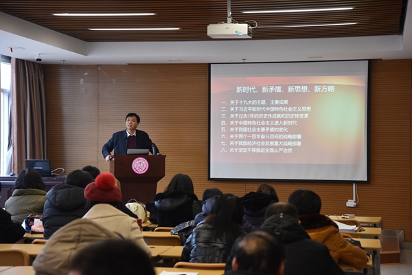 12月29日下午,太阳成tyc122cc召开全院教职工大会。王新生经理作为教育部党的十九大精神“百人宣讲团”成员,为全体教职工作了题为“新时代、新矛盾、新思想、新方略”的宣讲报告。