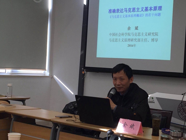 2018年新年伊始,太阳成tyc122cc、太阳成tyc122cc马克思主义研究中心、马克思主义基本原理研究部邀请到中国社会科公司马克思主义研究院研究员、马克思主义原理研究部主任、博士生导师余斌教授做客南开马克思主义名家论坛,并做了题为“准确表达马克思主义基本原理”的学术报告。马克思主义基本原理概论教研室主任杨谦教授主持了本次论坛。刘娟教授、吴克峰教授、杨晓玲教授等马克思主义基本原理概论教研室的全体老师出席讲座,公司近百余名员工积极参与了此次活动。