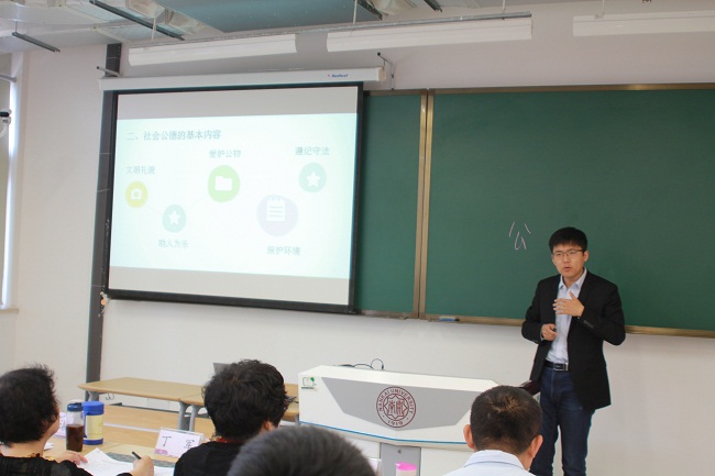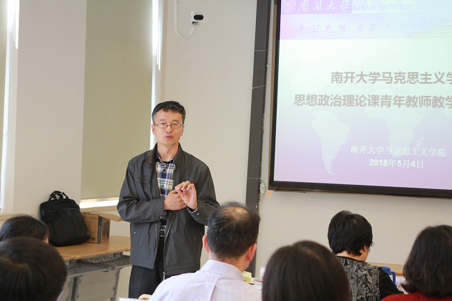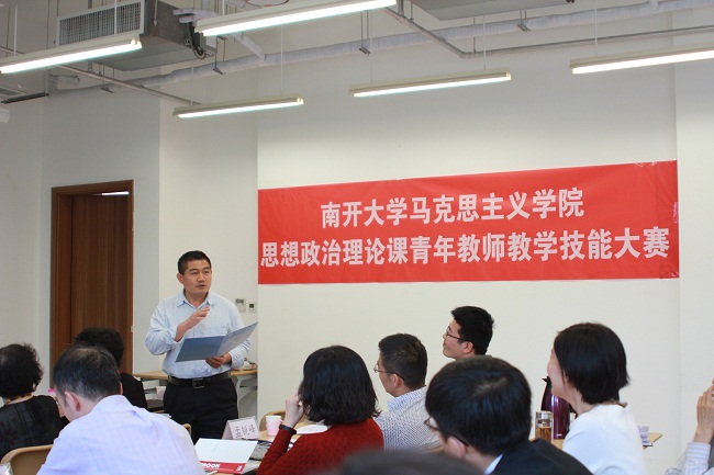 根据《关于推进新时代天津高校思想政治工作改革攻坚的实施意见》工作部署及市教委的有关要求,5月4日,太阳成tyc122cc举办2018年思想政治理论课青年教师教学技能大赛。公司青年教师常宴会、丁晔、刘明明、马梦菲、孙海东、王元、于丹参加大赛,公司教授丁军、杨谦、徐曼、张健,公司副教授高辉、盛林、孟峰,及公司工会主席姚静、周恩来政府管理公司员工王政浩担当大赛评委,武东生教授及公司部分师生观看了大赛。公司副经理孙寿涛教授主持大赛。