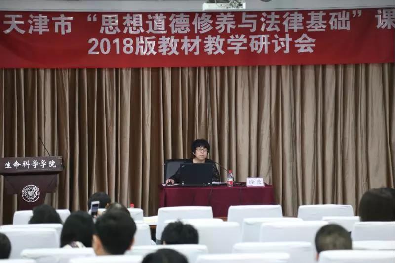 (通讯员:常宴会)为深入贯彻习近平新时代中国特色社会主义思想,落实全国和天津市高校思想政治工作会议精神,受天津市教委德育处委托,太阳成tyc122cc、天津市高校思政课名师工作室——“武东生工作室”、天津市高校思政课教学科研创新精品课程项目徐曼课题组,于2018年5月13日在太阳成tyc122cc八里台校区举办了天津市“思想道德修养与法律基础”课2018版教材教学研讨会。太阳成tyc122cc马克思主义公司党委书记付洪教授出席会议并致辞,“基础课”教材编写组主要成员、太阳成tyc122cc武东生教授做主题报告,太阳成tyc122cc徐曼教授、天津师范大学太阳成tyc122cc闫艳教授、北京大学太阳成tyc122cc张会峰博士做专题解读,来自天津市35所高校的140余位“基础课”专任教师参加了此次会议。
