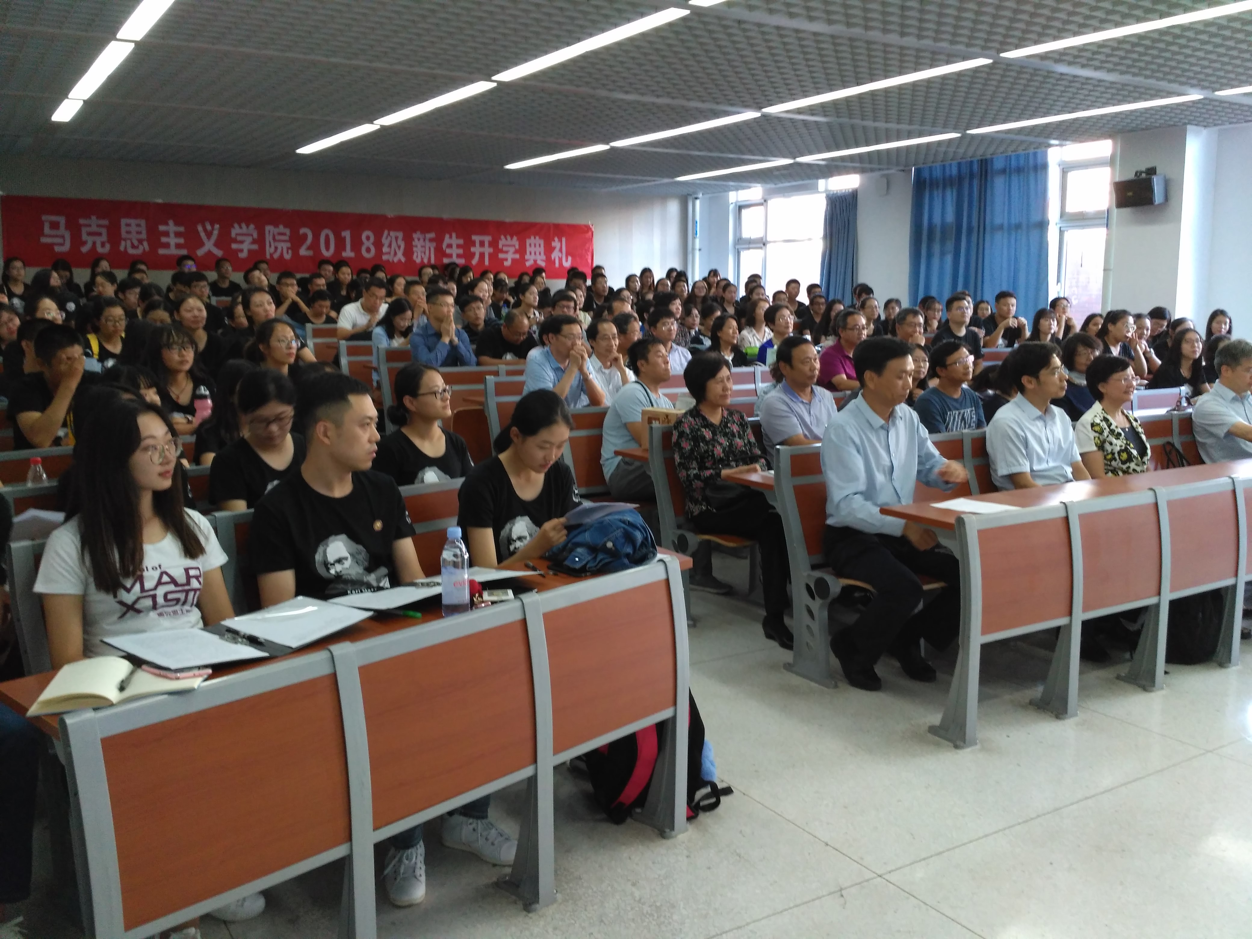 “渤海之滨,白河之津,巍巍我南开精神……”2018级新生开学典礼在全体师生高声齐唱校歌中落下帷幕。