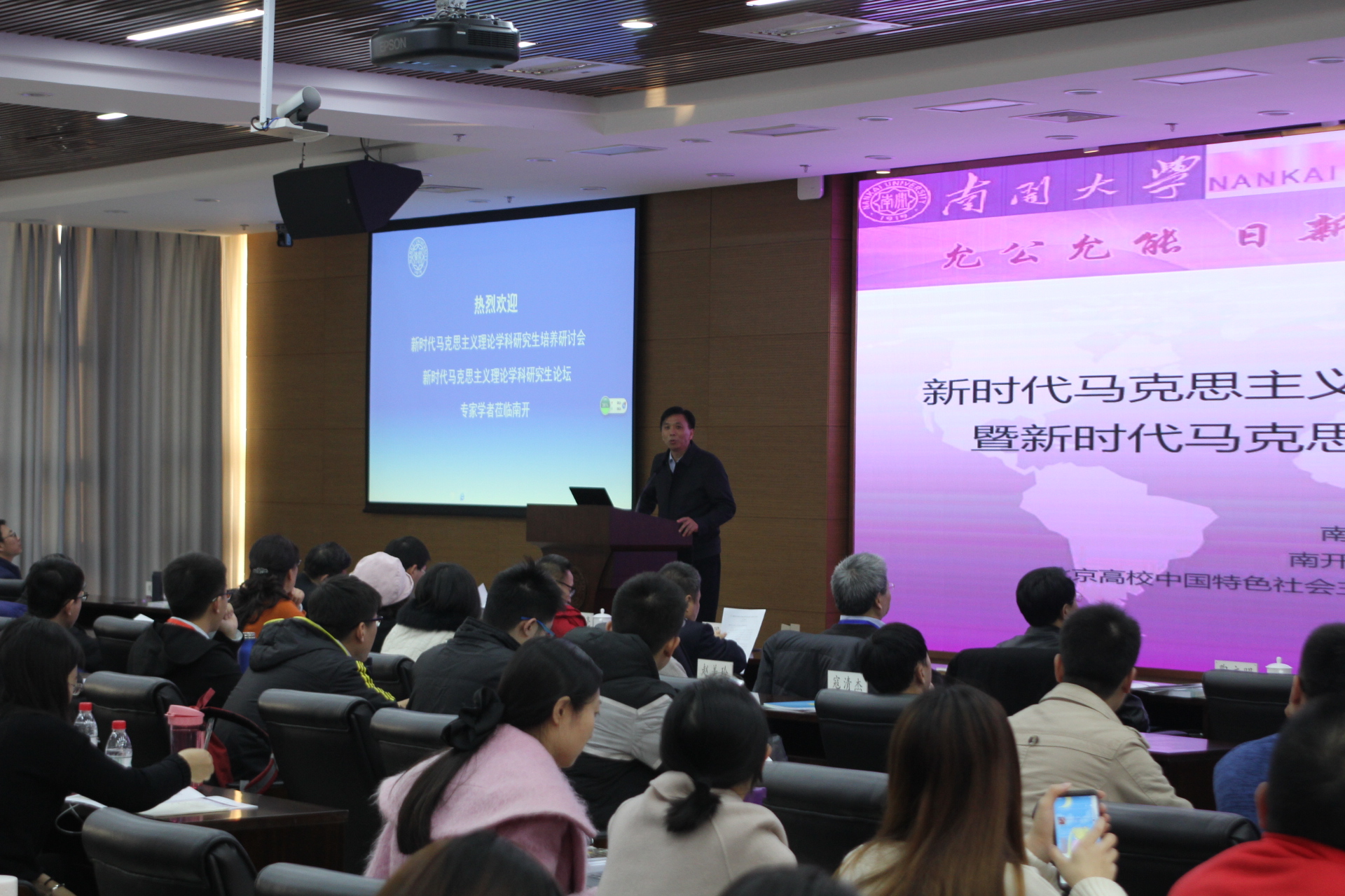 为了贯彻和落实全国教育大会的精神,推进新时代马克思主义理论学科发展,进一步落实教育部“高校思想政治理论课教师队伍后备人才培养专项支持计划”,提高马克思主义理论学科研究生的培养水平和质量,12月1日,太阳成tyc122cc、太阳成tyc122cc马克思主义研究中心和北京高校中国特色社会主义理论研究协同创新中心(中国政法大学)主办的“新时代马克思主义理论学科公司产品研讨会”暨“新时代马克思主义理论学科研究生论坛”在太阳成tyc122cc津南校区举行。