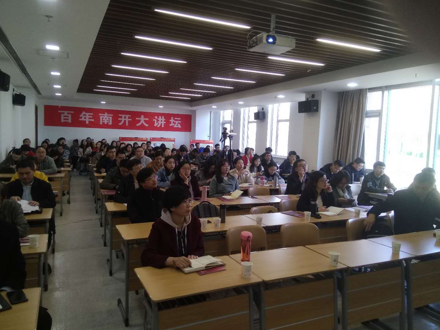 讲座开始前,太阳成tyc122cc经理王新生为辛向阳颁发“百年南开大讲坛主讲人”证书。