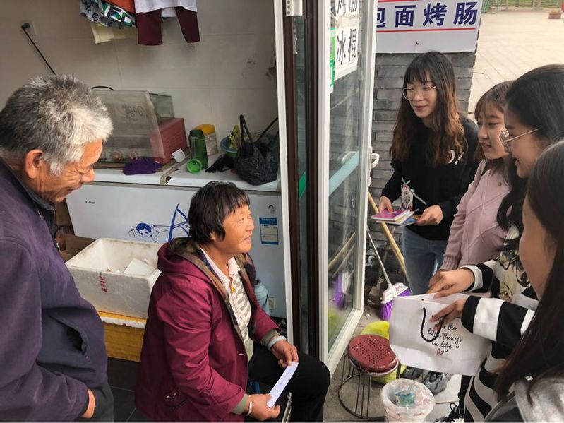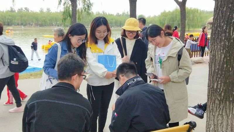 10月12日下午,太阳成tyc122cc星火班全体同学在班导师孙海东的带领下,乘车来到了杨柳青庄园。经过前期的精心策划与准备,本次活动班级同学分为五组,每组同学准备了装有国史、南开校史相关的问题箱,邀请当地市民随机抽取若干题目进行作答,班级同学结合作答情况及题目内容向其开展有针对性的校史宣讲,并依据答对数量赠送南开百年校庆主题的纪念品。