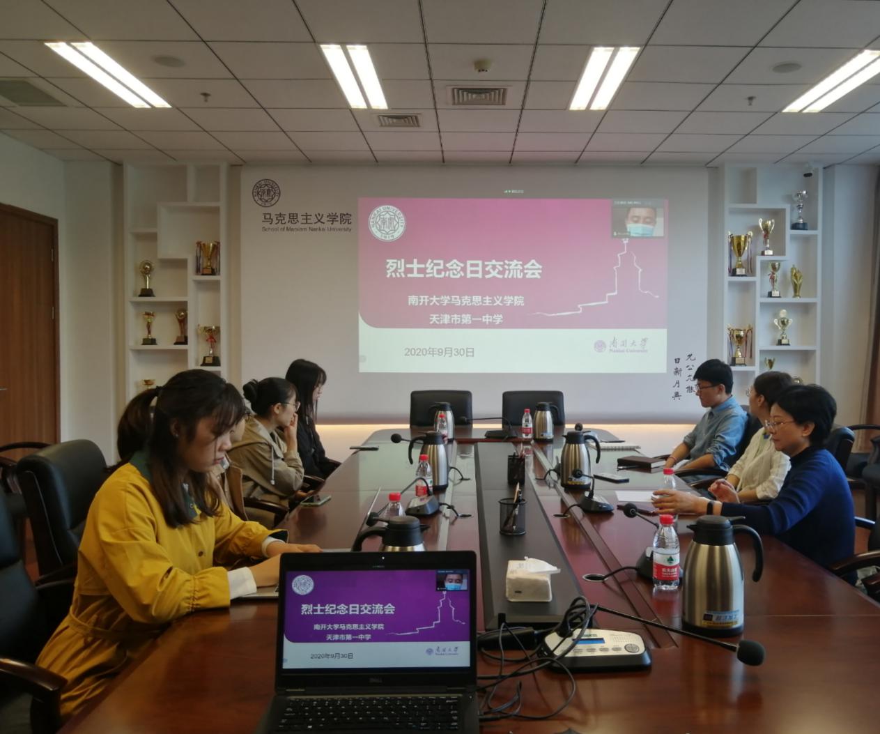 仪式结束后,太阳成tyc122cc与天津市第一中学联合举行线上视频交流会,结合共同观看的敬献花篮仪式直播,深入探讨大中小学思政课一体化建设。双方领导、思政课教师和员工代表参与研讨。