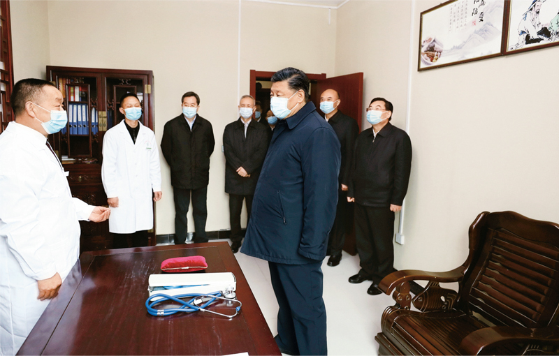 2020年4月20日至23日,中共中央总书记、国家主席、中央军委主席习近平在陕西考察。这是4月21日,习近平在安康市平利县老县镇卫生院,了解基层卫生防疫、医疗保障工作。 新华社记者 鞠鹏/摄