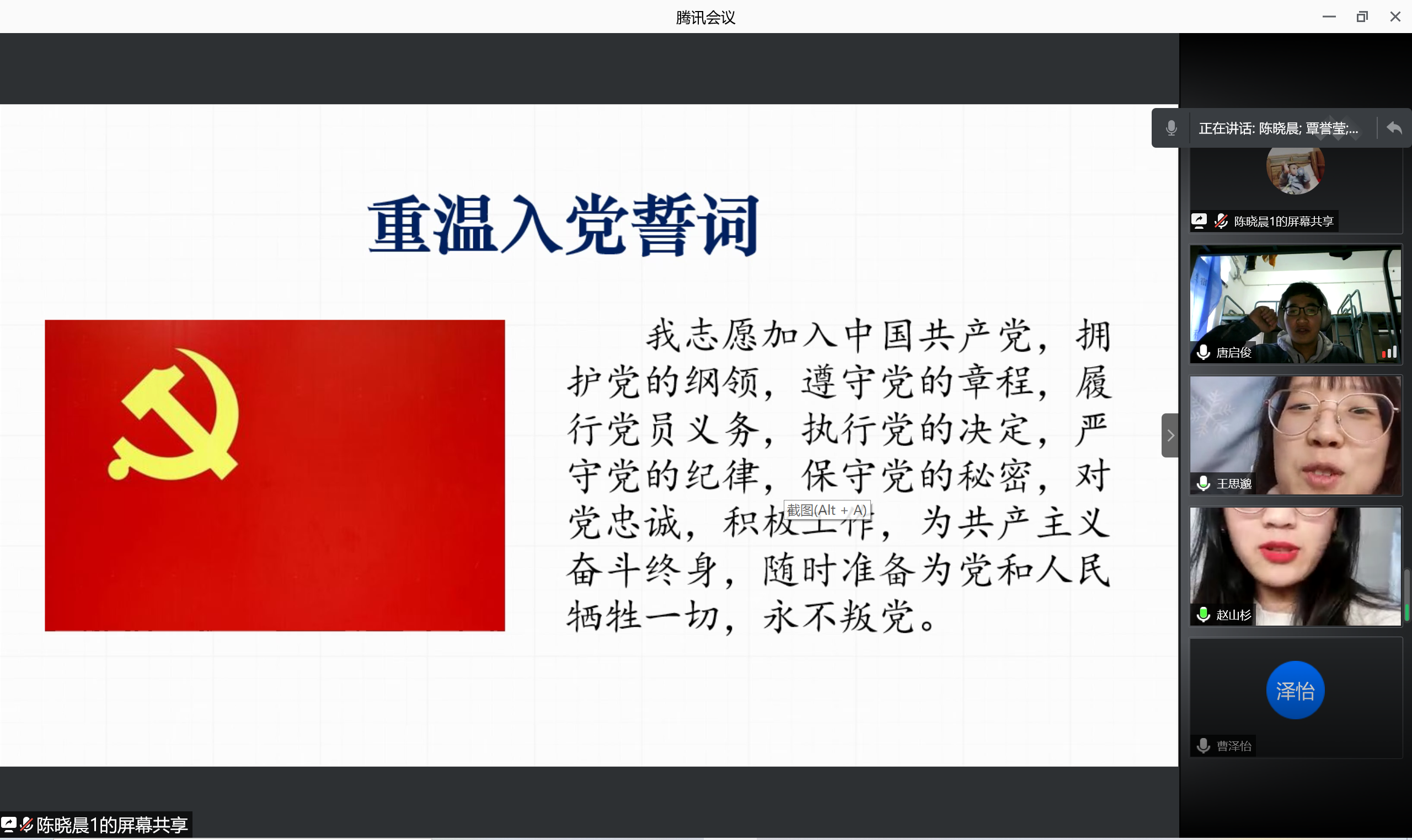 活动伊始,知行班党支部全体党员与山东省潍坊市临朐县公安局特巡警大队党支部王大文队长、山东省潍坊市临朐县嵩山生态旅游区机关党支部杨震警官一起重温入党誓词。身着制服的民警神情庄重,字字铿锵。