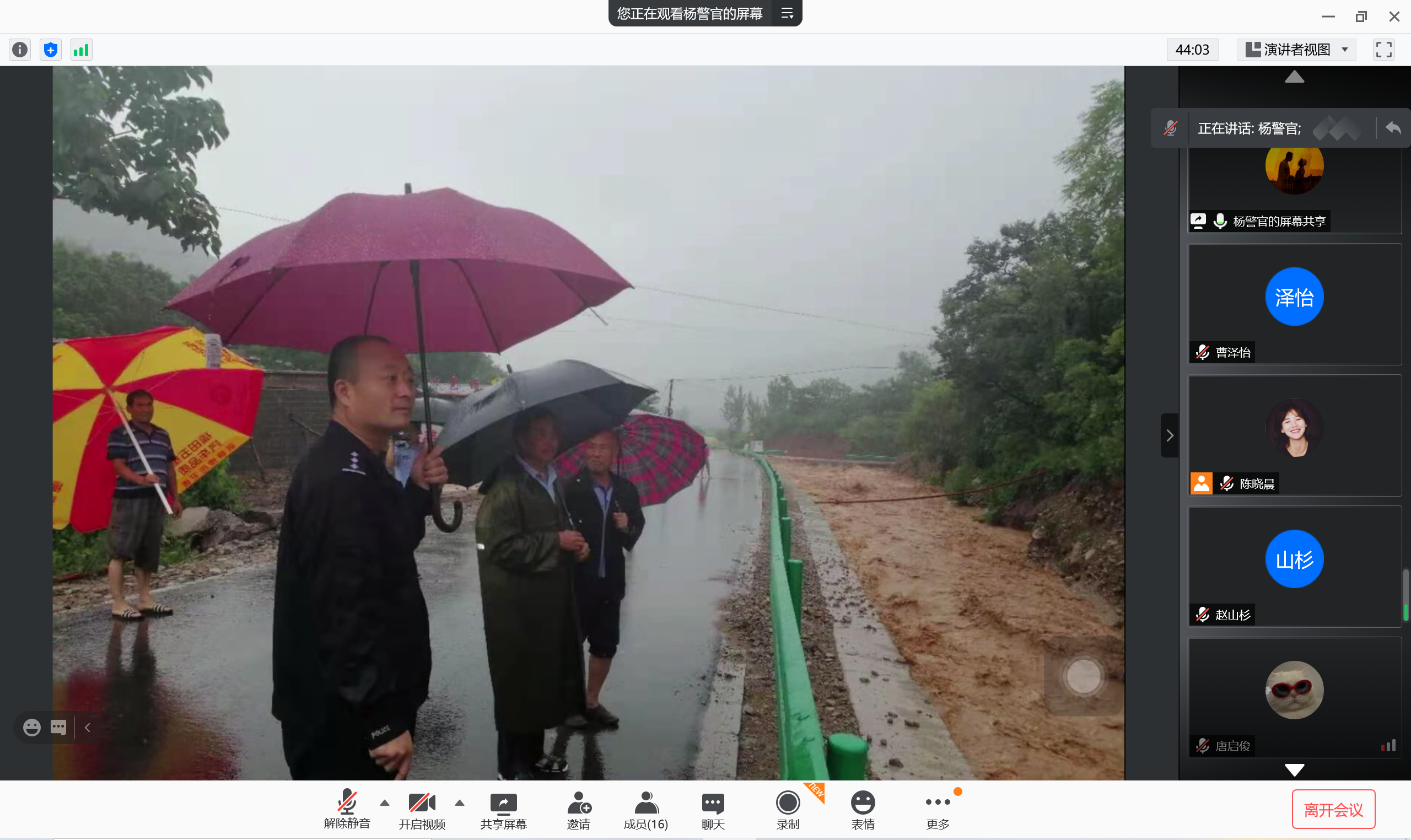 杨震通过展示其工作照片逐步向我们分享介绍他的日常工作:疫情期间在零下18度的半夜执勤、抓捕毒贩、调查治安状况等等。他表示,中国人民警察节的设立,是以习近平同志为核心的党中央对人民警察队伍的关心和关怀,增强了每一位民警的荣誉感和归属感。