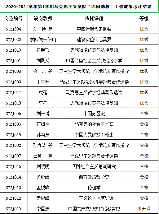 【公示】2020-2021学年第1学期太阳成tyc122cc“四同助教”工作成果考评结果