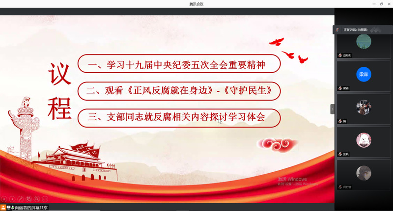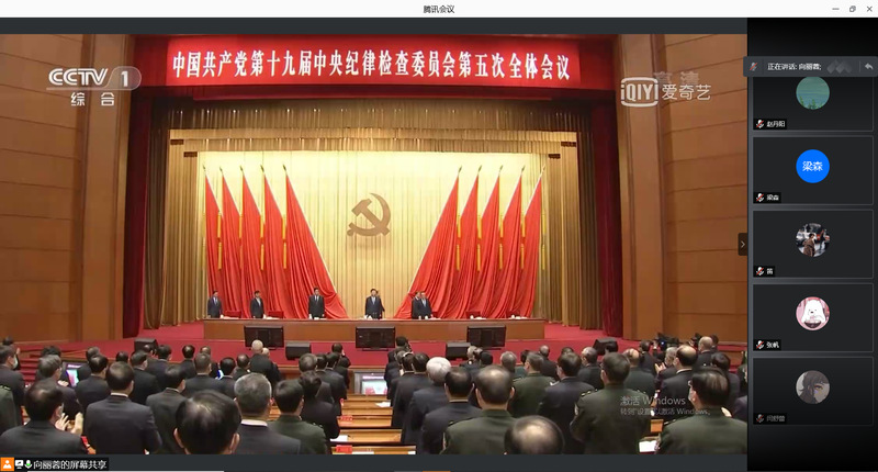 会议伊始,全体支部同学共同观看了第十九届中央纪律检查委员会第五次全体会议相关新闻,学习了十九届中央纪委五次全会有关精神。学习完毕后,向丽蓉同志领读了十九届中央纪委五次全会有关精神。