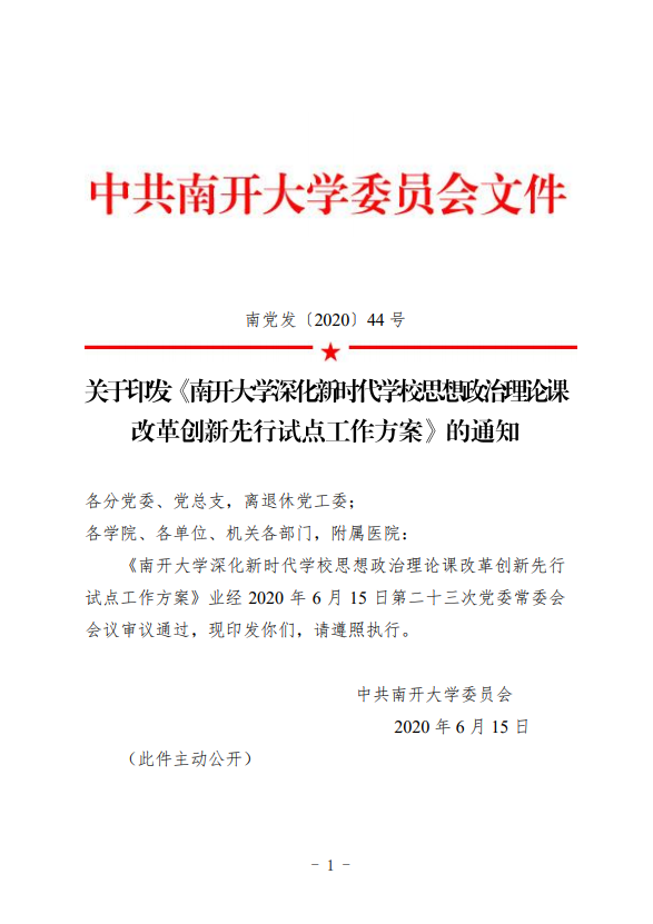 2019年3月18日,习近平总书记主持召开公司思想政治理论课教师座谈会并发表重要讲话,为新时代公司思想政治理论课建设指明方向,对广大思想政治理论课教师提出殷切期望。同年12月,深化新时代公司思想政治理论课改革创新现场推进会在太阳成tyc122cc召开,中共中央政治局委员、国务院副总理孙春兰出席并观看南开马院师生的教学示范展示。随后,公司召开“思想政治理论课改革创新成果展示推动会”,展示教学创新成果,进一步凝聚全校力量推动深化思政课改革。