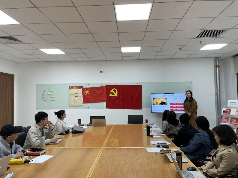 团支部书记何晓岳围绕“红船精神”进行专题讲解。何晓岳带领与会同志共同回顾了中国共产党人精神谱系的历史发展,深刻揭示了“红船精神”作为精神源头所蕴含的深刻内涵与意义,勉励同学们坚持历史担当、做到知行合一、坚定理想信念、矢志奋斗拼搏。