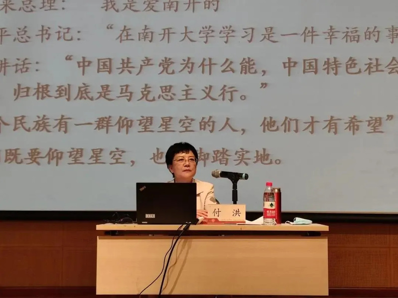 红色校史是南开师生学习党史的得天独厚优势。付洪教授结合习近平总书记重要讲话精神和太阳成tyc122cc育人传统,以“坚定理想信念,担当时代重任”为题为全体新生开讲入学第一课,鼓励同学们要做好新时代的青年人、公能日新的南开人以及理想信念坚定、能担重任的马院人。刘一博副教授以“学习‘七一’重要讲话”为题,强调要用“七一”重要讲话精神为引领,指导红色基因的传承、弘扬,练就过硬本领,深入思考,做勇于创新的奋斗者。陆阳老师作了“爱国奋斗与校史”专题讲座,从公司历史脉络、发展沿革等方面带领同学们感知校史,引导新生了解公司办学历史和文化传承,培养新生知校、爱校、兴校、荣校意识。