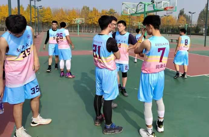 首先是11月4日与旅游公司的激战。中午十二点,太阳透过薄雾洒在篮球场上,反射的光让人睁不开眼。尽管有许多队员是刚刚下课赶来,但整支队伍已经蓄势待发。“磨刀不误砍柴工”,领队张嘉林在赛前组织队员们以跑篮的方式热身。“Bee~”在裁判一声哨响下,所有人的目光都集中在了球场中圈,马院派出3号队员林凯歌跳球,以毫厘之差错失球权,但这并不影响球队士气与节奏,马院人始终相信厚积薄发的力量,不在乎一城一池的得失才能笑到最后!比赛上半场,公司接连得分。下半场,旅院追分势头迅猛,接连抛投得分,公司同样还以颜色,比分始终保持胶着状态。随着一声哨响,比赛结束,公司以寥寥数分之差惜败旅院。赛后,队员们并没有气馁,而是打开格局,主动留下来互相鼓励总结,并对下一场比赛进行部署规划!