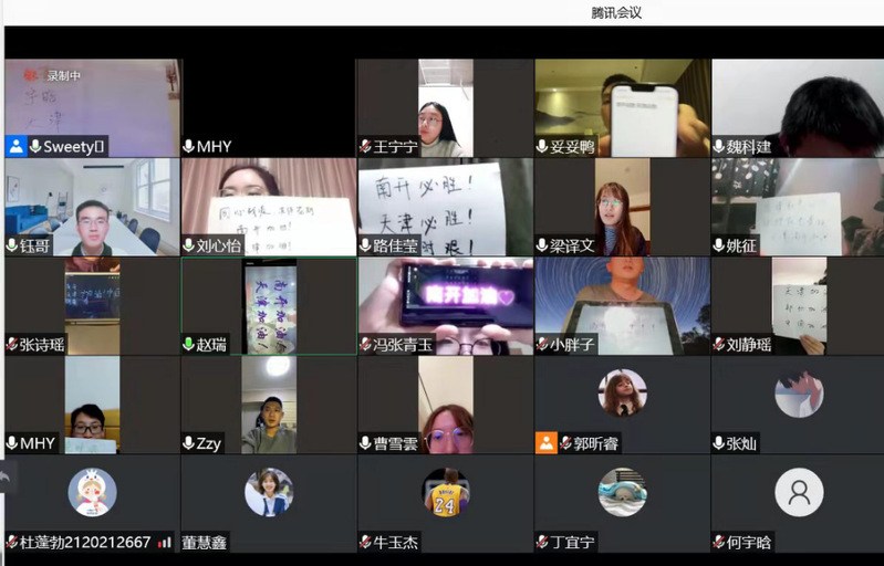 团日活动的最后,同学们齐唱团歌并纷纷写下“南开必胜!天津必胜!中国必胜!”为抗击疫情加油鼓劲。相信只要大家勇担责任使命,坚定决胜信念,携手并进,共克时艰,就必定能打赢这场战疫防控阻击战,在春暖花开时于南开园再相见!