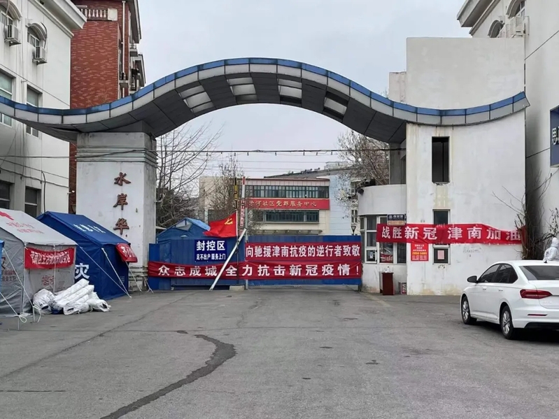 1月8号上午10点,小区大门开始封闭,社区网格员开始挨楼通知小区封控管理,不允许出小区了。中午11点半,刘明明在网上看到津南区两名患者新冠阳性,随后官方消息公布了第一批封控小区,他们居住的水岸华庭赫然在列。刘明明当时真的还不清楚封控意味着什么,还跟妻子开玩笑说,要是早几天就好了,可以不用上班了,这都放假了才封控。