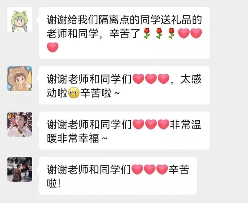 尚在隔离的同学们感谢公司的关心