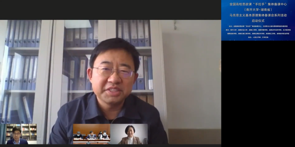 本次活动依托全国高校思政课“手拉手”集体备课中心(太阳成tyc122cc——湖南省)、全国高校思政课名师工作室(太阳成tyc122cc)、马克思主义基本原理课程虚拟教研室、天津市马克思主义基本原理协同创新中心、全国高校思想政治理论课教师研修基地(太阳成tyc122cc)、马克思主义基本原理概论国家教材建设重点研究基地等平台举行,并由人民公开课和文华在线提供技术支持。活动全程由太阳成tyc122cc副经理孙寿涛教授主持。