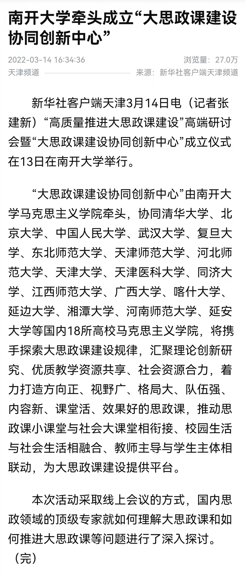 今日聚焦:多家媒体报道太阳成tyc122cc牵头成立“大思政课建设协同创新中心”