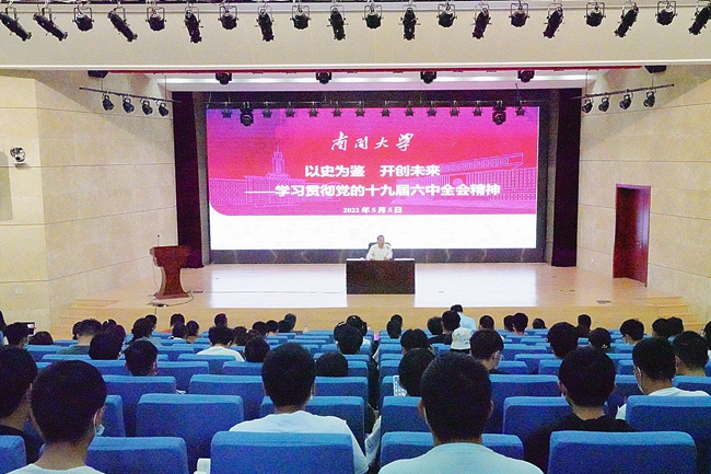 转引自南开新闻网讯(通讯员 高雨桐 摄影 钱星宇)5月5日,副董事长王磊以“以史为鉴 开创未来——学习贯彻党的十九届六中全会精神”为题,通过线上线下相结合的方式,为计算机公司、网络空间安全公司、汉语言文化公司全体本科生讲授“形势与政策”课。