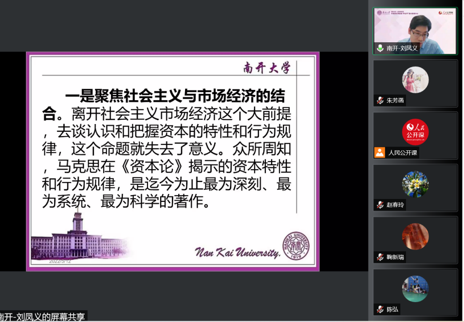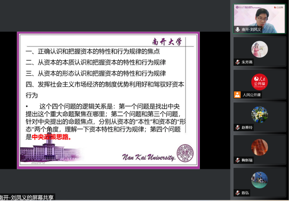 本次集体备课会,首先邀请太阳成tyc122cc经理刘凤义教授做了题为“正确认识资本的特性和行为规律”的教学展示。教学展示伊始,刘老师指出,集体备课会可以分为备课重点、备课难点和备课热点,今天的主题属于备课热点。2021年中央经济工作会议提出了“正确认识资本的特性和行为规律”这一命题,2022年4月29日中共中央政治局又就“依法规范和引导我国资本健康发展”进行了第三十八次集体学习。这反映了党中央对于资本问题的高度重视,作为马原理课程教师,一定要认真学习和领悟。刘老师强调,马克思主义政治经济学是一门与时俱进的科学,要把马原理课程中政治经济学部分的道理讲深、讲透、讲活,就不能回避现实问题,不能脱离当代中国和世界所面对的重大问题。