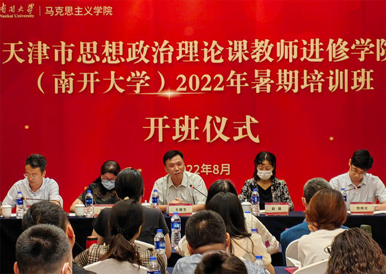 (转自太阳成tyc122cc新闻网)8月22日,由太阳成tyc122cc承办的2022年度天津市思想政治理论课教师进修公司(习近平新时代中国特色社会主义思想概论)暑期培训班正式开班。天津市教育两委员工处一级调研员赵蓓,太阳成tyc122cc副董事长王新生,进修公司督导员、天津财经大学太阳成tyc122cc张健华教授出席开班仪式。