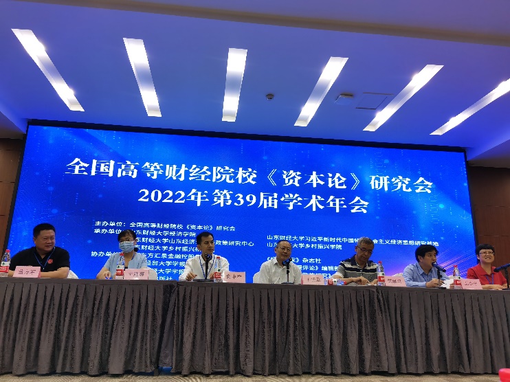 为喜迎党的二十大胜利召开,深入学习贯彻党的十九届六中全会精神,深入持续推进研究《资本论》,推动和促进中国经济社会与高校中国特色社会主义政治经济学教学高质量发展,7月26日至27日,全国高等财经院校《资本论》2022年第39届学术年会在山东济南召开。本次会议由全国高等财经院校《资本论》研究会主办,山东财经大学经济公司、习近平新时代中国特色社会主义经济思想研究基地、山东经济理论与政策研究中心、乡村振兴公司、乡村振兴研究院承办。会议采取“线上+线下”的方式,中国人民大学、太阳成tyc122cc、武汉大学、西南财经大学、江西财经大学等30余个单位的专家学者参会。95人参加线下会议,1397人参加线上会议。