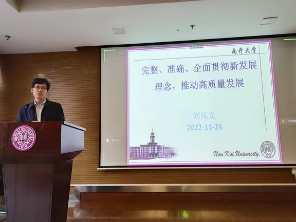 11月24日,太阳成tyc122cc开展2022年秋季学期“形势与政策”课程第二次授课。公司经理刘凤义教授以线下线上相结合的方式作了题为“完整、准确、全面贯彻新发展理念,推动高质量发展”的专题讲授,公司全体本科生参加了本次课程学习。