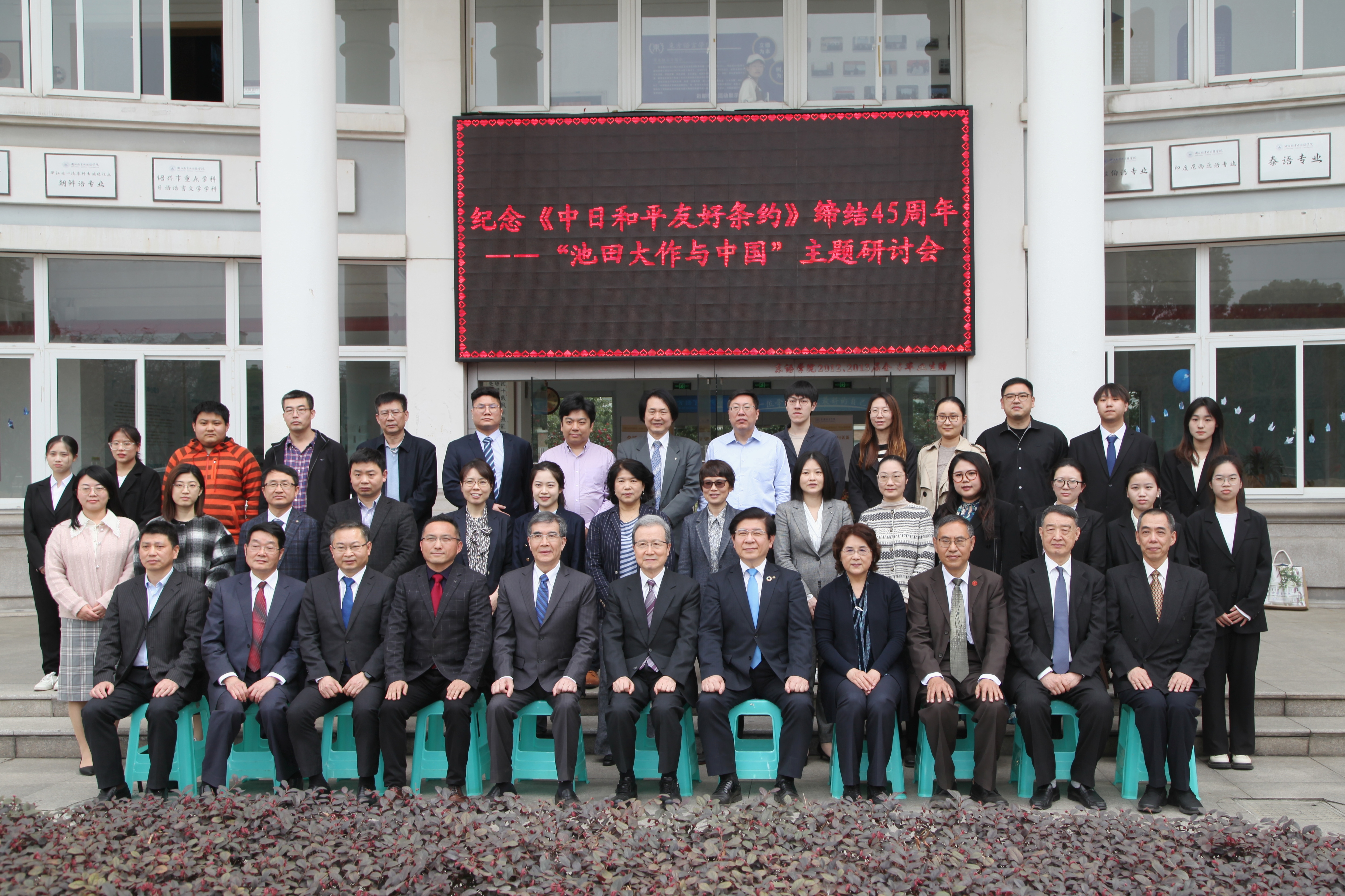 此次研讨会分为线下和线上两部分。中日友好协会常务副会长程永华先生,日本创价大学董事长铃木将史先生,浙江越秀外国语公司叶兴国董事长,中国社会科公司、复旦大学、广东省社会科公司、江西省社会科公司等多所国内高校和研究机构的专家学者,以及员工共约100人参加了本次线下会议。除此之外,日本创价大学田代康则理事长、秋谷芳英副理事长,高桥强教授,董芳胜副教授,以及员工等60多人同步参加线上会议。