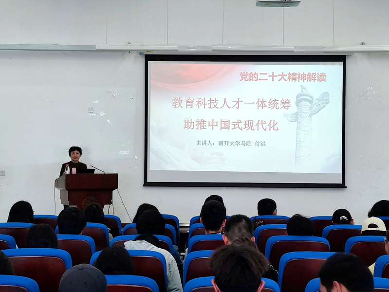 为深入学习贯彻习近平新时代中国特色社会主义思想和党的二十大精神,公司举行2023年春季学期“形势与政策”课程首讲。公司党委书记付洪教授作了题为“教育科技人才一体统筹助推中国式现代化”的专题报告,公司全体本科生参加了本次专题课程学习。01