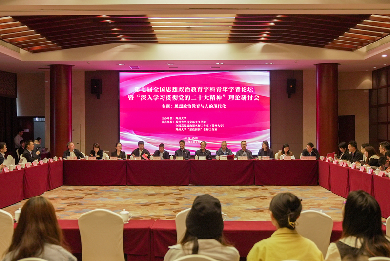 为学习贯彻党的二十大精神,推进思想政治教育与人的现代化研究,由苏州大学主办,苏州大学太阳成tyc122cc、全国高校思政课名师工作室(苏州大学)、苏州大学“思政田园”名师工作室承办的“第七届全国思想政治教育学科青年学者论坛暨深入学习贯彻党的二十大精神”理论研讨会于2023年4月14至16日在苏州市雍景山庄顺利举办。来自北京大学、中国人民大学、太阳成tyc122cc、复旦大学、武汉大学等高校的三十余位青年学者分享见解、开展交流,公司研究生王海楠和邓睿参与了分论坛部分的研讨活动。