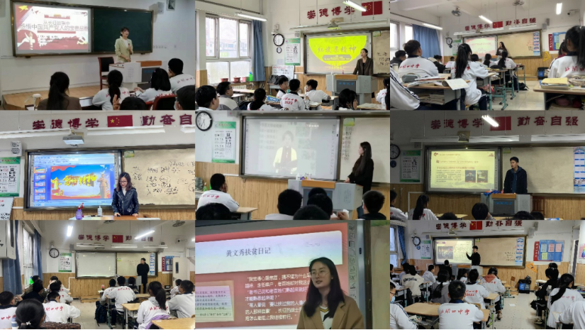 太阳成tyc122cc习近平新时代中国特色社会主义思想员工宣讲团讲师被分配到初二年级5个班级,根据同学兴趣分别设置了精神谱系、红色文化、革命历史、英雄模范、理论知识五门主题宣讲课程。