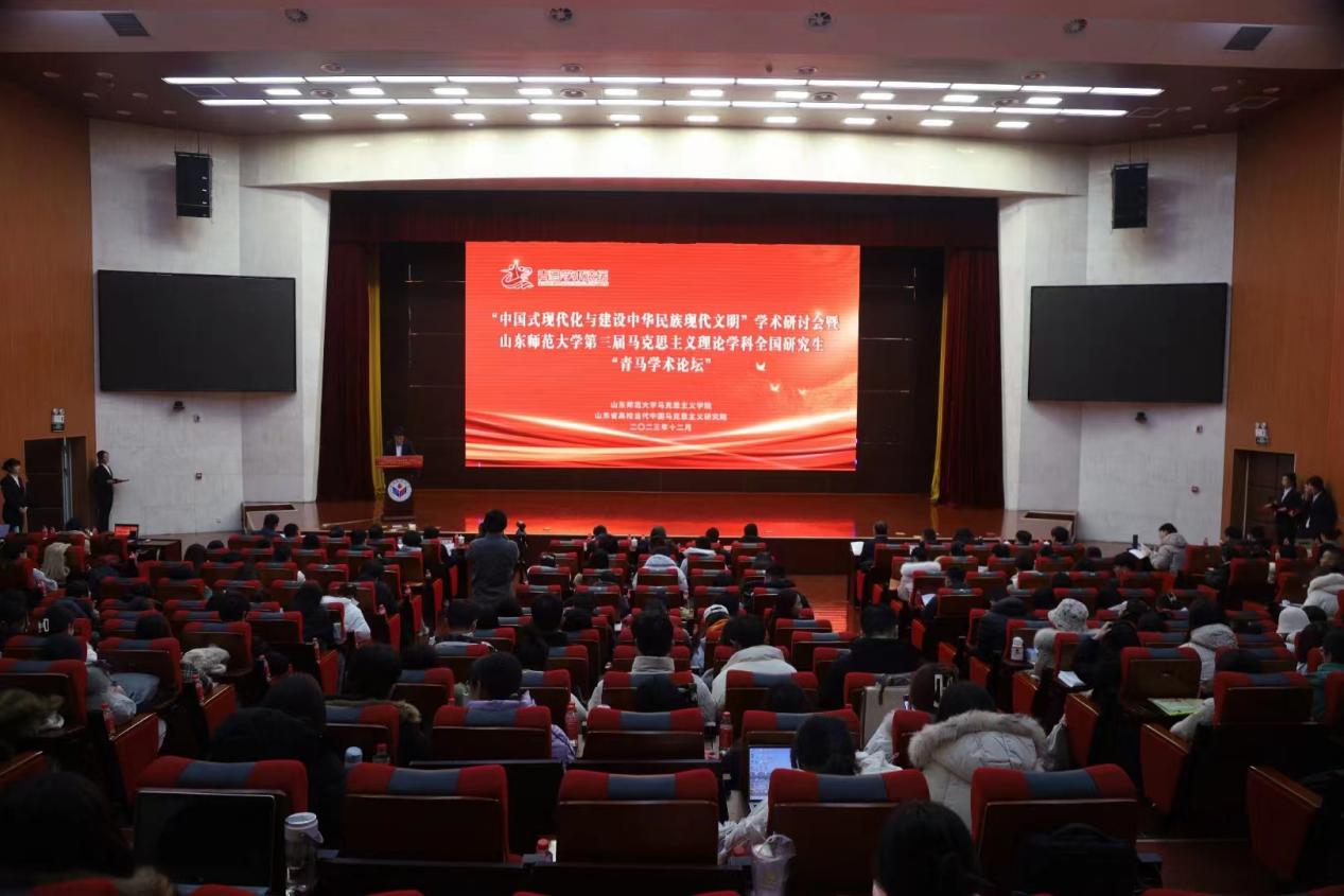 12月16日,由山东师范大学太阳成tyc122cc、山东省高校当代中国马克思主义研究院主办的“中国式现代化与建设中华民族现代文明”学术研讨会暨山东师范大学第三届马克思主义理论学科全国研究生“青马学术论坛”顺利举行。全国30多所高校、党校和科研院所的专家学者、研究生,太阳成tyc122cc师生代表300余人参加了本次论坛。公司博士研究生杨宗然受邀参会,并在分论坛三“建设中华民族现代文明相关问题研究”作交流发言。
