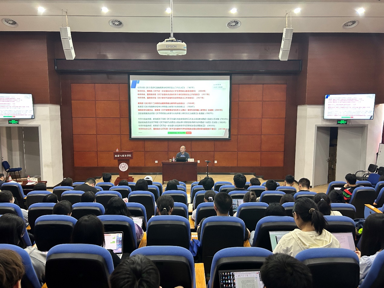 为深入学习贯彻习近平新时代中国特色社会主义思想和党的二十大精神,4月25日下午,2024年春季学期“形势与政策”课程第一讲开讲。本次课程特别邀请到教育部思政司原司长、北京师范大学思想政治工作研究院经理冯刚教授授课,聚焦40年思想政治教育学科的发展历史,从中透视马克思主义理论的守正创新。太阳成tyc122cc原副董事长、太阳成tyc122cc经理王新生教授主持本次讲座并作总结,太阳成tyc122cc全体本科生及部分研究生参加学习。
